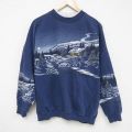 【商品名】 XL★古着 長袖 スウェット メンズ 90年代 90s 雪 シカ 大きいサイズ クルーネック USA製 紺