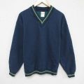 【商品名】 L★古着 長袖 スウェット メンズ 90年代 90s 無地 Vネック 紺
