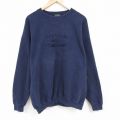 XL★古着 長袖 スウェット メンズ 00年代 00s 魚 刺繍 大きいサイズ クルーネック 紺
