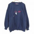 XL★古着 長袖 スウェット メンズ 00年代 00s ジェフゴードン 刺繍 大きいサイズ クルーネック 紺