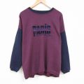 XL★古着 長袖 スウェット メンズ 大きいサイズ ツートンカラー クルーネック エンジ他