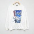 L★古着 長袖 スウェット メンズ 00年代 00s USA ワシ 刺繍 クルーネック 白