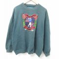 XL★古着 長袖 スウェット メンズ 00年代 00s ディズニー DISNEY ミッキー MICKEY MOUSE 刺繍 大きいサイズ クルーネック 濃緑