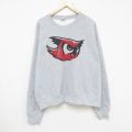 【商品名】 XL★古着 MVスポーツ 長袖 スウェット メンズ 00年代 00s ミミズク 大きいサイズ クルーネック グレー 霜降り