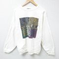 L★古着 長袖 スウェット メンズ 90年代 90s 灯台 総柄 クルーネック 白