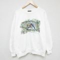 XL★古着 長袖 スウェット メンズ 90年代 90s アラスカ 鳥 刺繍 表起毛 大きいサイズ クルーネック USA製 白