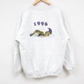 L★古着 長袖 スウェット メンズ 90年代 90s アイオワ大学 刺繍 クルーネック 薄グレー 霜降り