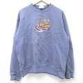 【商品名】 M★古着 長袖 スウェット メンズ 00年代 00s シカ 刺繍 クルーネック 薄紺