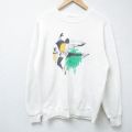 M★古着 長袖 スウェット メンズ 90年代 90s 野花 クルーネック 白