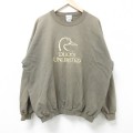 XL★古着 長袖 スウェット メンズ 00年代 00s シカ 刺繍 大きいサイズ クルーネック 緑系他