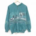 【商品名】 XL★古着 長袖 スウェット メンズ 90年代 90s カモ ヘンリーネック USA製 緑【spe】