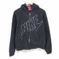 XL★古着 ナイキ NIKE 長袖 ブランド フルジップ スウェット パーカー メンズ ワンポイントロゴ 大きいサイズ 黒