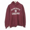 XL★古着 チャンピオン Champion 長袖 スウェット パーカー メンズ シカゴ カレッジ 大きいサイズ エンジ 24nov25 中古 スエット トレーナー トップス