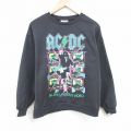 【商品名】 XL★古着 長袖 ロック バンド スウェット メンズ 00年代 00s ACDC ポリエステル クルーネック 黒【spe】