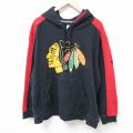 【商品名】 XL★古着 長袖 スウェット パーカー メンズ NHL シカゴブラックホークス 刺繍 大きいサイズ 黒 フード内側メッシュ アイスホッケー