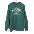 【商品名】 XL★古着 長袖 スウェット メンズ 90年代 90s ノートルダム 刺繍 大きいサイズ ロング丈 クルーネック 濃緑