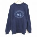 【商品名】 XL★古着 長袖 スウェット メンズ 90年代 90s ネイビーピア 刺繍 大きいサイズ クルーネック 紺