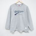 XL★古着 トミーヒルフィガー TOMMY HILFIGER 長袖 ブランド スウェット メンズ 90年代 90s ビッグロゴ クルーネック グレー 霜降り