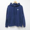 XL★古着 ナイキ NIKE 長袖 スウェット パーカー メンズ ワンポイントロゴ 大きいサイズ 紺