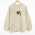 XL★古着 長袖 スウェット メンズ シカ 刺繍 大きいサイズ クルーネック ベージュ