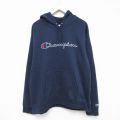 XL★古着 チャンピオン Champion 長袖 スウェット パーカー メンズ ビッグロゴ 大きいサイズ 紺