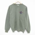 L★古着 長袖 スウェット メンズ 90年代 90s SEASONNS 野球 バスケットボール クルーネック 濃緑