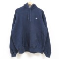 【商品名】 XL★古着 チャンピオン Champion 長袖 スウェット パーカー メンズ ワンポイントロゴ 紺