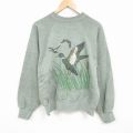 【商品名】 L★古着 長袖 スウェット メンズ 90年代 90s カモ ラグラン クルーネック USA製 薄緑 霜降り