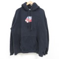 XL★古着 長袖 スウェット パーカー メンズ アイスホッケー 刺繍 大きいサイズ 黒