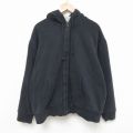 XL★古着 長袖 フルジップ スウェット パーカー メンズ 刺繍 大きいサイズ コットン 黒
