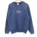 M★古着 長袖 スウェット メンズ 90年代 90s 刺繍 クルーネック USA製 紺