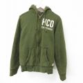 【商品名】 L★古着 ホリスター Hollister 長袖 フルジップ スウェット パーカー メンズ ワンポイントロゴ タロン 濃緑 内側ファー
