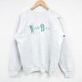 L★古着 長袖 スウェット メンズ 90年代 90s USA 刺繍 クルーネック USA製 薄グレー 霜降り