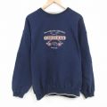 【商品名】 XL★古着 長袖 スウェット メンズ 00年代 00s 釣り 刺繍 大きいサイズ クルーネック 紺