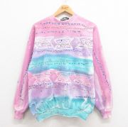 L★古着 長袖 スウェット メンズ 90年代 90s ネイティブ柄 ラグ柄 ラグラン クルーネック USA製 ピンク他
