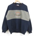 【商品名】 L★古着 長袖 スウェット メンズ 00年代 00s メルボルン カンガルー 刺繍 ツートンカラー クルーネック 紺