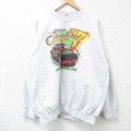 【商品名】 XL★古着 長袖 スウェット メンズ 00年代 00s レーシングカー クルーネック 薄グレー 霜降り
