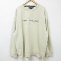 【商品名】 XL★古着 トミーヒルフィガー TOMMY HILFIGER 長袖 ブランド スウェット メンズ 00年代 00s ビッグロゴ 刺繍 大きいサイズ クルーネック ベージュ【spe】