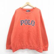XL★古着 ラルフローレン 長袖 ブランド スウェット メンズ 90年代 90s ビッグロゴ 刺繍 大きいサイズ クルーネック オレンジ系