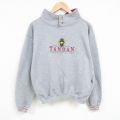 【商品名】 L★古着 長袖 スウェット メンズ 00年代 00s タノ語族 刺繍 モックネック ハイネック グレー 霜降り