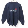 【商品名】 M★古着 長袖 スウェット メンズ 90年代 90s ワシントン 花 刺繍 クルーネック USA製 黒