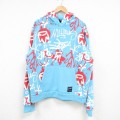 【商品名】 XL★古着 長袖 スウェット パーカー メンズ 総柄 水色