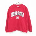 【商品名】 XL★古着 アディダス adidas 長袖 スウェット メンズ ネブラスカ 刺繍 Vネック 赤