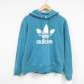 【商品名】 XL★古着 アディダス adidas 長袖 スウェット パーカー メンズ リーフ トレフォイル コットン 青緑