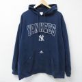XL★古着 アディダス adidas 長袖 スウェット パーカー メンズ 00年代 00s MLB ニューヨークヤンキース 刺繍 大きいサイズ 紺 ネイビー メジャーリーグ ベースボール 野球 25feb10 中古 スエット トレーナー トップス