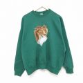 【商品名】 XL★古着 ヘインズ Hanes 長袖 スウェット メンズ 00年代 00s 犬 刺繍 クルーネック 緑【spe】