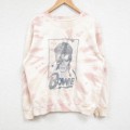【商品名】 M★古着 長袖 スウェット メンズ デビッドボウイ クルーネック 薄オレンジ タイダイ