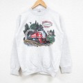 【商品名】 S★古着 長袖 スウェット メンズ 00年代 00s 電車 クルーネック グレー 霜降り