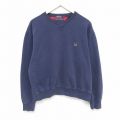 L★古着 長袖 スウェット メンズ 00年代 00s ワンポイントロゴ クルーネック 紺