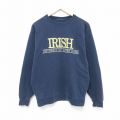 XL★古着 長袖 スウェット メンズ 00年代 00s ノートルダム 大学 刺繍 大きいサイズ クルーネック 紺